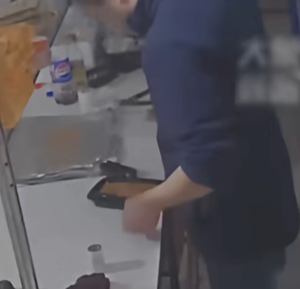 网传视频显示,一名男性店员在打包一盒饭菜时,有疑似向饭盒中吐口水的动作,随后他盖上了饭盒的盖子。